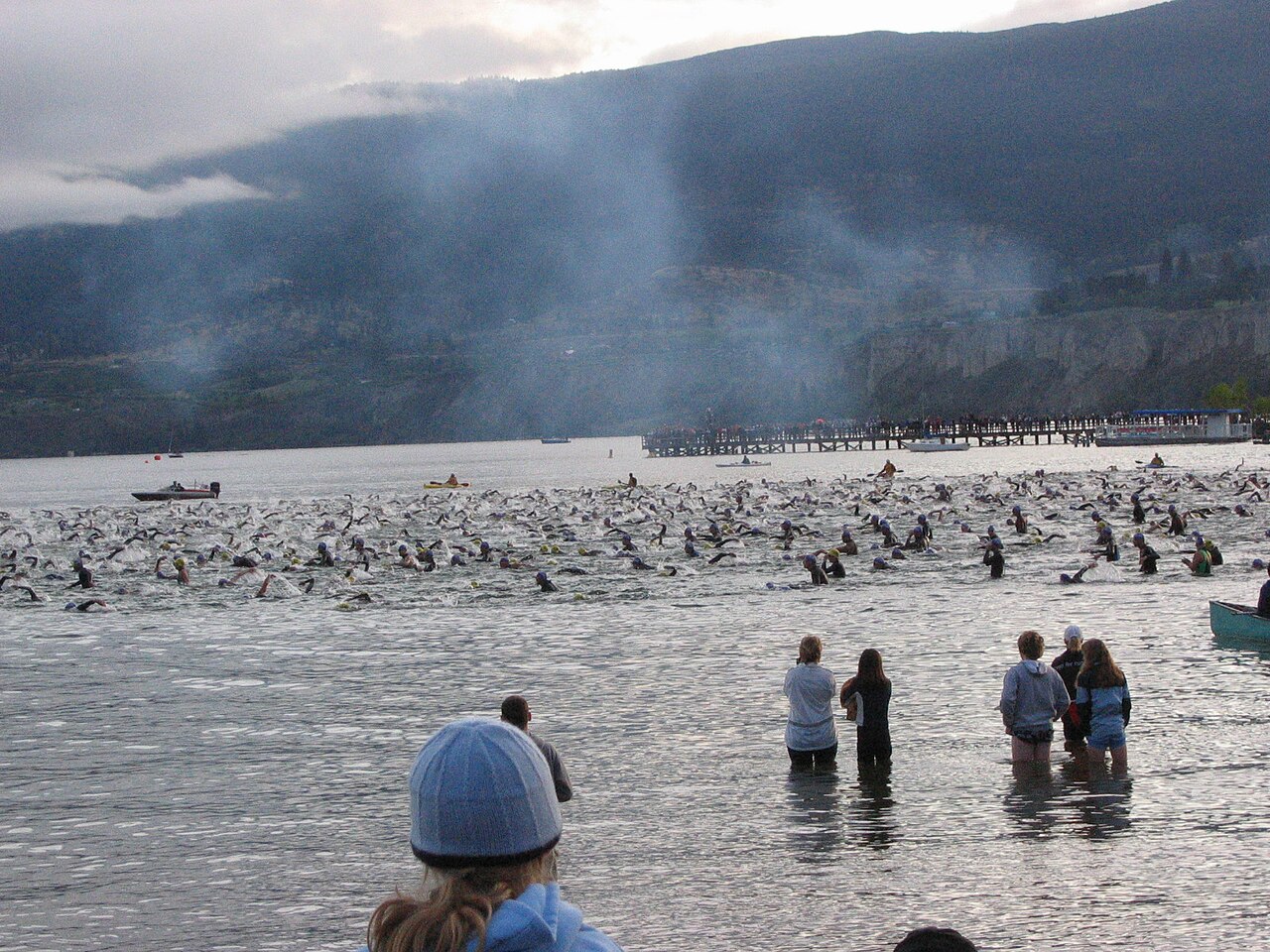 The water in Okanagan Lake is the colour of cold tea — a deep, translucent brown-green that clears to turquoise where the morning light hits the shallows. At six in the morning in Penticton, the lake is glassy. The Okanagan Valley cradles the water between dry, sage-covered hills on both sides, the air already carrying the dusty sweetness of late-summer fruit orchards. Somewhere in the distance, a vineyard irrigation pump clicks on. This is wine country. This is also one of the oldest Ironman courses in the world.