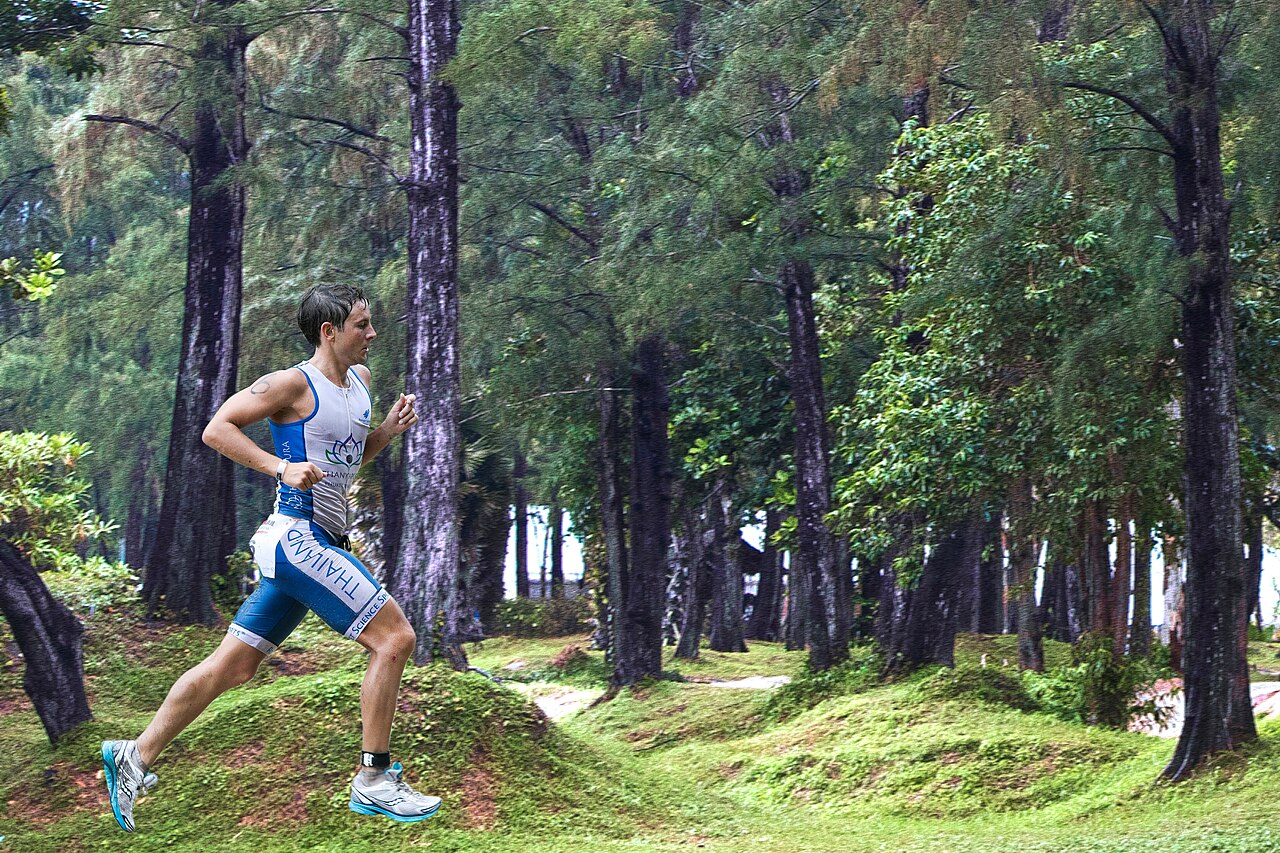 The Andaman Sea swim is warm (28-30°C), crystal-clear, and non-wetsuit. You swim in tropical water over white sand, and the sensory pleasure of the swim is so intense that it's easy to forget you have a very long day ahead. The bike heads into Phuket's interior — rolling hills through rubber plantations and jungle that accumulate 900m of climbing in tropical heat and humidity. The run along the coast returns you to the beach, where Thai spectators and the expat triathlon community create a finish-line atmosphere that's part race celebration, part beach party.