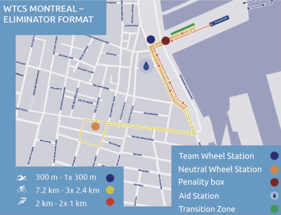 The World Triathlon Series Montreal is a Olympic Distance distance triathlon: 1500m swim, 40km bike, and 10km run (51.5km total) in Montreal, Canada.